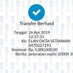 Berikut Beberapa Bukti Pembayaran Pemesanan Bio Septic tank seluruh Indonesia