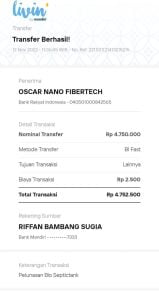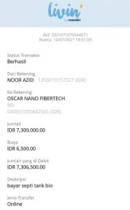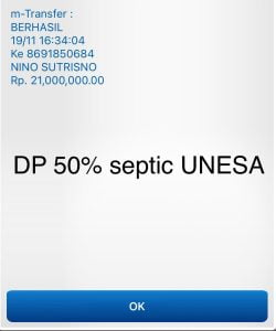 Berikut Beberapa Bukti Pembayaran Pemesanan Bio Septic tank seluruh Indonesia